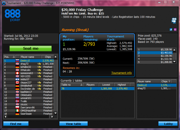 Вобщем я так подумал подумал и решил,что лучше играть 10 турниров на качество с аби 80$ чем 30 турниров на скорость с аби 40$=) . Во первых реально можно сесть и ченить прикольное выкинуть (типа миндонк\даблчекрейз флоп терн в рега) чем играть просто тыкая на кнопки нитово играя по карте.Во вторых.... тут ничего :P Вобщем сделал вывод,что играть в покер мне нравится больше,чем учавствовать в соревновании "откатай больше туриков за месяц чем блек" Ну и плюс играть 100$ и ребайники по 55$, когда рядом 7 турниров с би 22) кажется немного глупым.