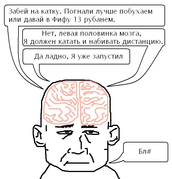 Далее: Отдых. Очень важный элемент, которому я не придал значения на старте марафона. Нет, понятное дело, что я отдыхаю. Но этот отдых у меня часто вызывает чувство вины. Пример: Я собираюсь катать субботний вечер. настроился и вдруг телефонный звонок: "погнали на улочку". В итоге ты тешишь себя мыслями, сначала "ну ладно, на часик", потом "еще час и домой". А когда просыпаешься следующим днем, после литра виски, то сразу думаешь "блин, ну вот опять прое#ал 2 дня".