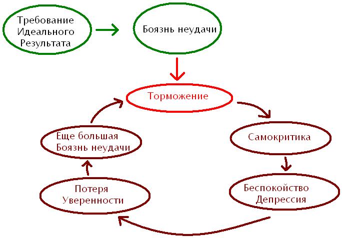 Вот схема из этой книги. Единственное что я изменил, написал вместо "Прекрастинация" - "Торможение".