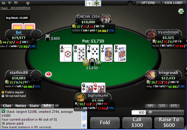 Final Pot: 59,812 Bigfishka44 shows Ace Queen high