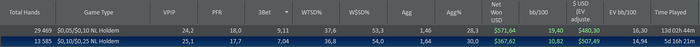 Ниже два вида статистики с нл25 и с нл10 Pokerstars. Дистанция нл10 за 4 месяца с 1июня по 1 октября а дистанция нл25 с 20 октября по 20 ноября. Отчёт планирую давать каждый день в этой теме.