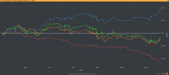 SB: $26.71 - VPIP: 14, PFR: 12, 3B: 12, AF: 3,5, Hands: 138BB: $60.88 - VPIP: 40, PFR: 19, 3B: 9, AF: 3,2, Hands: 111