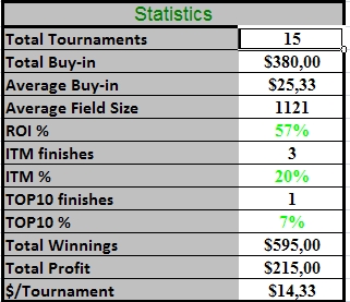 $15,000 GT Freezeout $22 PokerStars 951 1890 $0 -$22,00 A6s<Q9, T9<J8