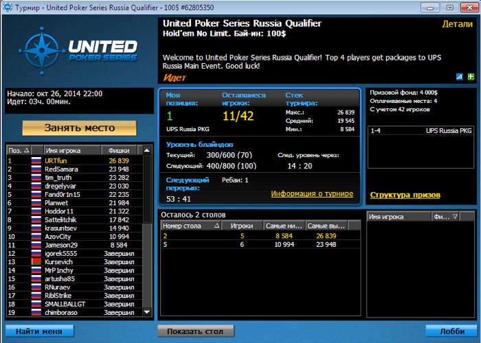Даже не знаю, в чем состояла проблема, и что случилось с серваком 888 в такой ответственный момент - буквально через 30 минут рум вполне себе нормально функционировал. Может, беда в том, что во время той самой злополучной раздачи сформировался финальный стол сателлита UPS Oracul?