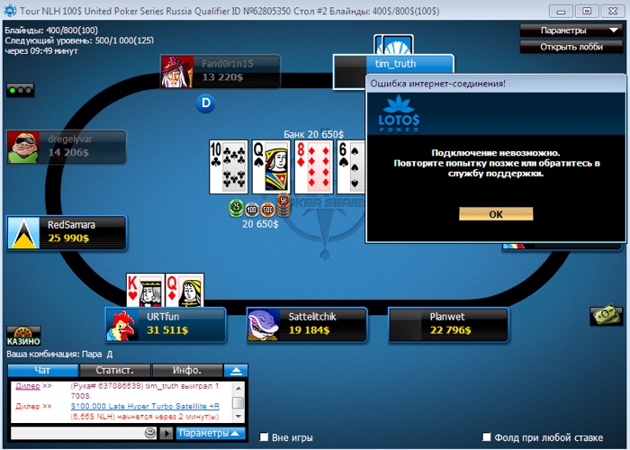 Всем привет! Осталось чуть больше часа до второй инкарнации сателлита по $100 на Lotos Poker. Напомню, разыгрываются четыре путевки по $1,000 на UPS Oracul. Как и все остальные участники, 19 октября я стал жертвой технических неполадок на серверах 888.