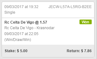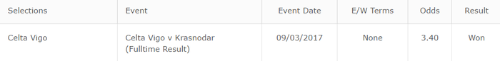 Pogoda, все таки лучше не вгонять в заблуждение читателей дневника. То был первый и последний озвученный прогноз. Также брал Сельту только предматч 1к постов на Джипси у меня сегодня