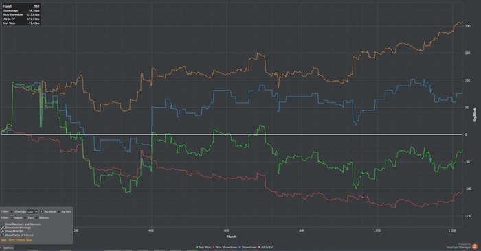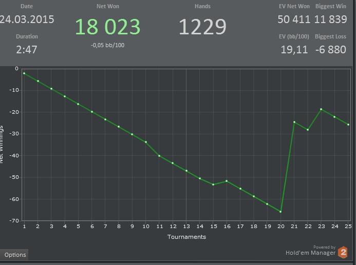 К концу сессии уже хотел кэшаутить остатки и завязывать с этим, но бля...втащился последний турик и вроде как -35 не так много. Ну ладно, даю себе завтра последний день, если играю опять в минус, то всё что есть вывожу под 0 и пока завязываю с покером до лучших времён. Просто ну невозможно выиграть 24й день подряд