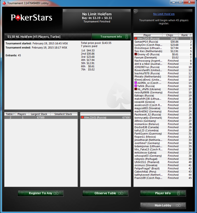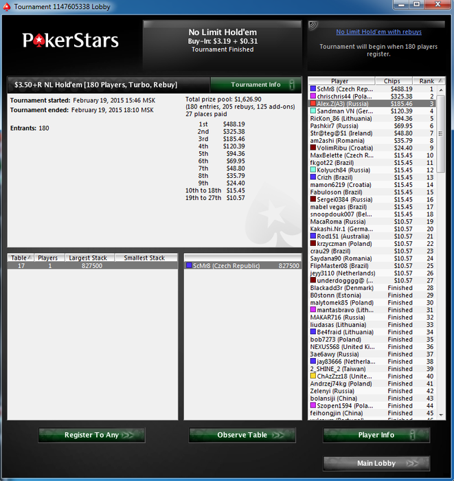 Сегодня играл долго, сыграл 190 туриков, набилось 330впп ну что сказать, сегодня раз 5 точно мог уже закончить марафон свой)) были 2 финалки 3+R но 7ое 9ое и еще 10ое место было потом в хоте по 2 бакса шел хорошо всю дорогу, но к сожалению не сложилось только 12ый. Скоро уже втащится точно))) Пришлось весь профит в снгшках набивать... шел почти +300 но не удержал темп в конце поубивали) В итоге сыграл плюс 155, конечно могло быть лучше! но буду рад тому что есть) Этот нокаут потом еще разок втащил)