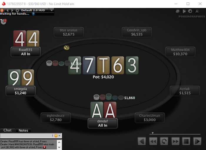 ThatzMe00 folds, koost calls $395