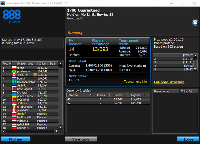 WeakTight Poker Hand History ConverterStacks:UTG frostinho (