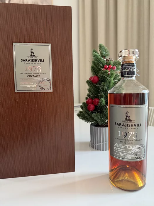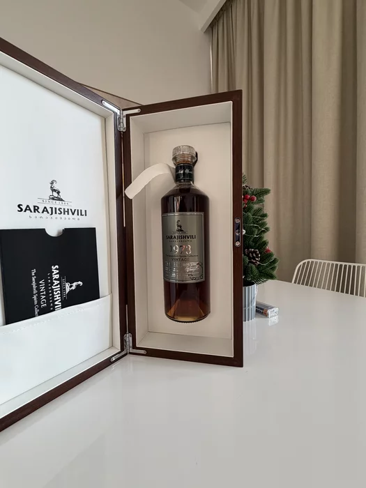Коньяк был куплен в Тбилиси в прошлом году. Стоил что-то около 750 баксов. Хотел открыть по достижении финансовой цели, но не достиг. До отъезда из Дубая нужно утилизировать. Оранжевое вино тоже из Грузии, с подписью винодела.