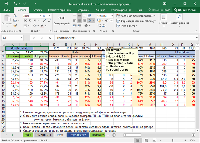 Видишь, примечание к Bluffs - HM filtering ))) и дальше расписано, какие фильтры задать в HM2, чтобы выделить именно блефы. А обсчитываю я их уже как идиот в экселе, ибо ХМ не даст правильно оценить точность блефов