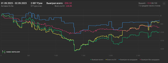 02/09/2023: 5.00ч, 2887 рук nl25 -$90.