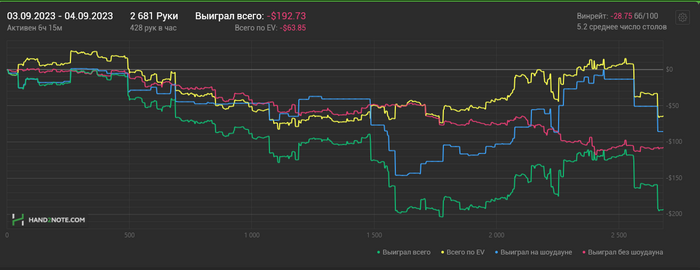 04/09/2023: 6.15ч, 2681 рук nl25 -$223.