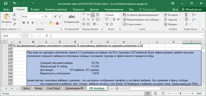Ив, меня не напрягло это. Ну нет, и нет - съезжу в оффлайн. Но я НЕ ИДИОТ. Чтобы продолжать колупаться, видя, что софт не просто подтасовывает, а просто не дает выигрывать и все, пока ты не наиграешь дистанцию. Не сгенеришь рейк. То есть не включишь 20 столов. Ну я не буду играть, если я попадаю везде в 0,5%-1% аналака.