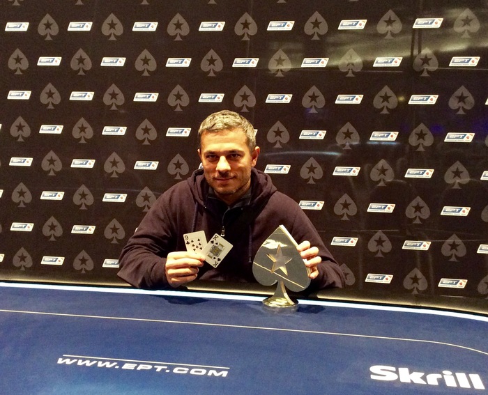 Вчера прикольная была раздача между двумя французами в турнире по 550. На флопе АKQ мы увидели олын в десятки раз больше пота(короче почти весь стартовый на ранних блайндах), и колл. Префлоп сыграли обычно, рейз с поздней, колл на бб. Олинщик показал А2 ......а тот, что заколил, 64 в пику, на флопе было флеш дро его)))