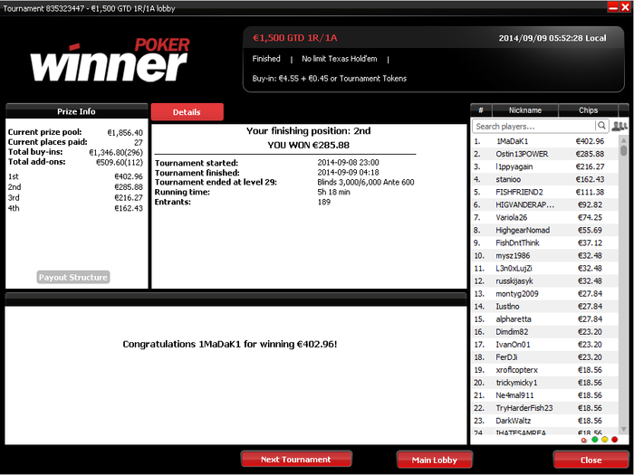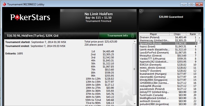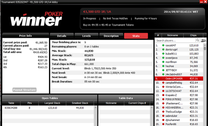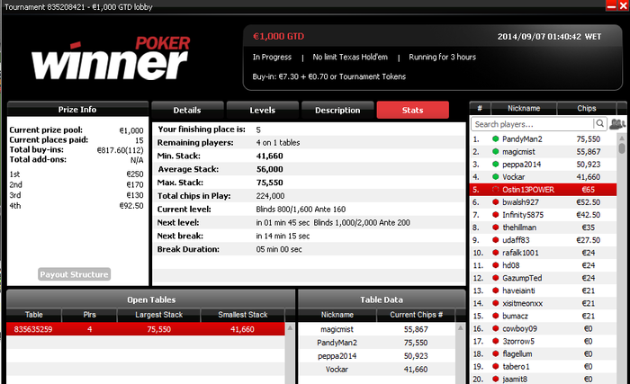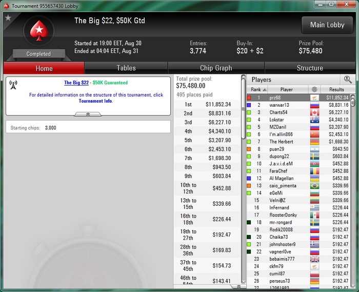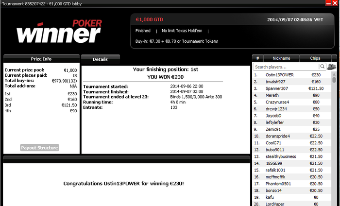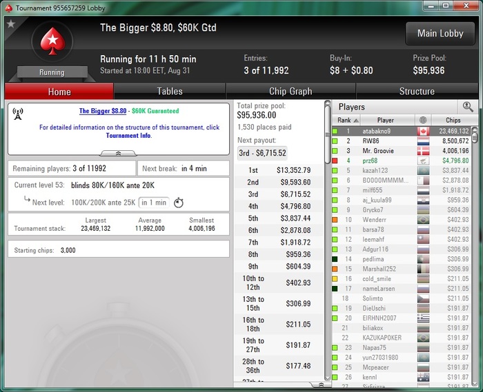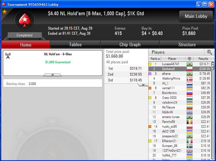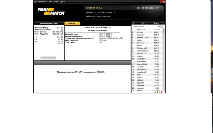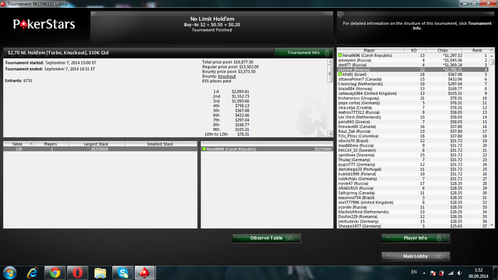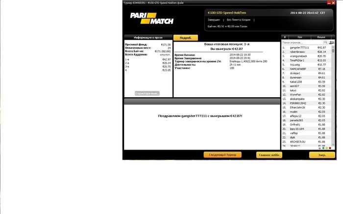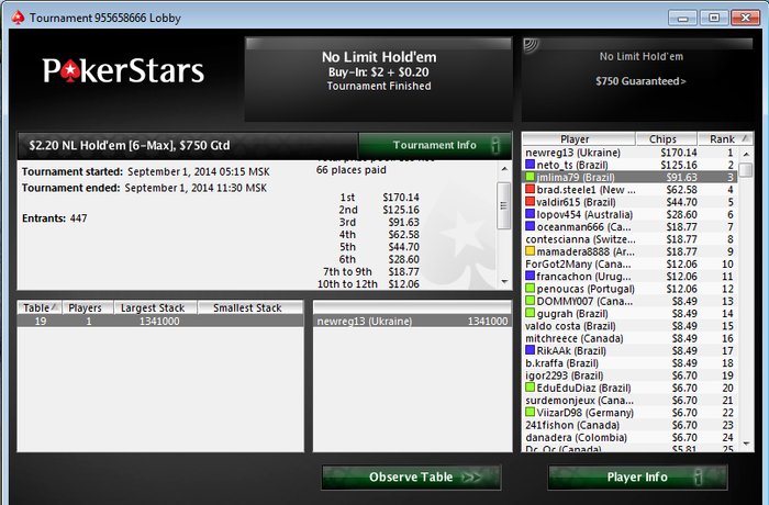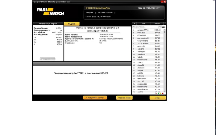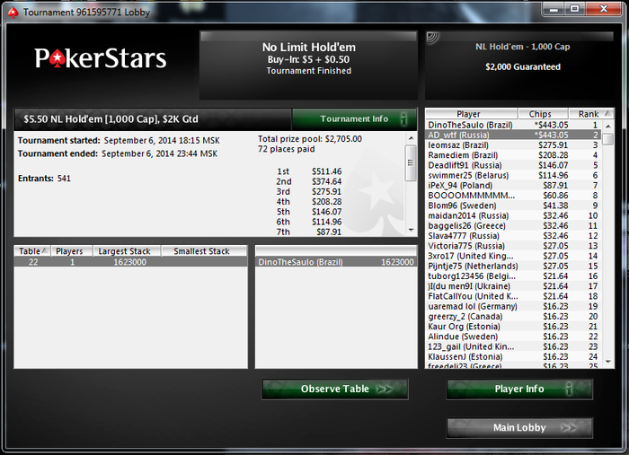 Разобрался с двумя бразильцами, а с третьим поделили. Занос небольшой, но приятный не в плане денег, а потому что получилось, т.к. покер у меня просто хобби под настроение :)