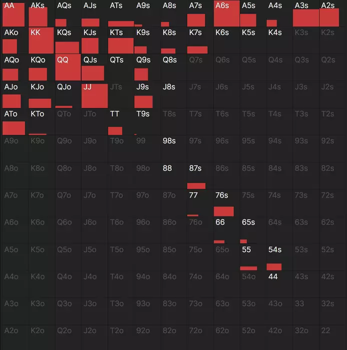 Там ведь 100% колл у всех одномастных низких пиковых рук вплоть до 98ss, только с QJss начинаются осторожные рейзы (30%).
