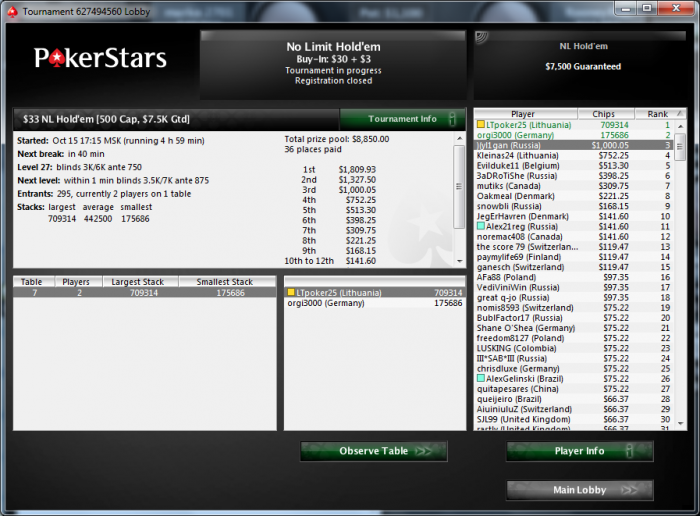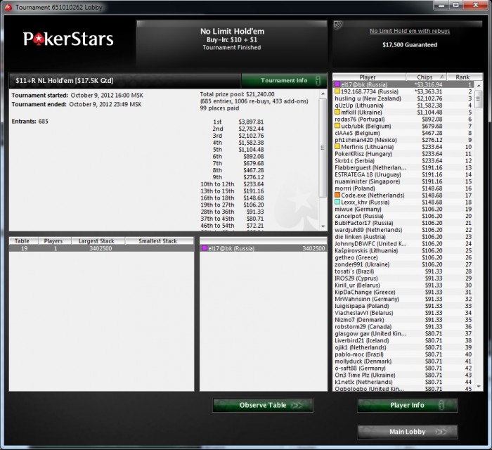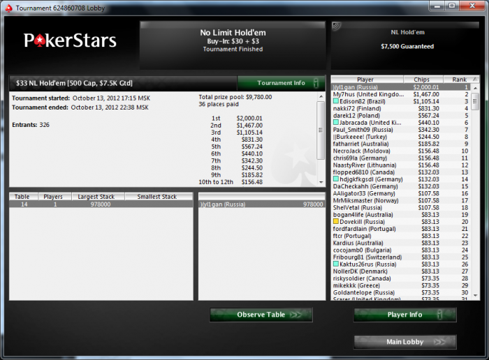 Зарегался на Лотосе лишь для того, чтобы отыграть с командой своего форума на Regional Battle, поддержать проект. Днем было делать нечего, решил сыграть небольшой турнир. В онлайне играю нерегулярно, так что очень доволен резалтом.