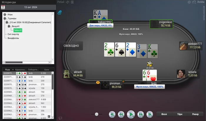 Brdz1 @ 13.10.24Нам дали 10 билетов на супер саттелит к турниру на Покердоме по 25000 рублей в пятницу, 18 октября, который будем играть с Авророй