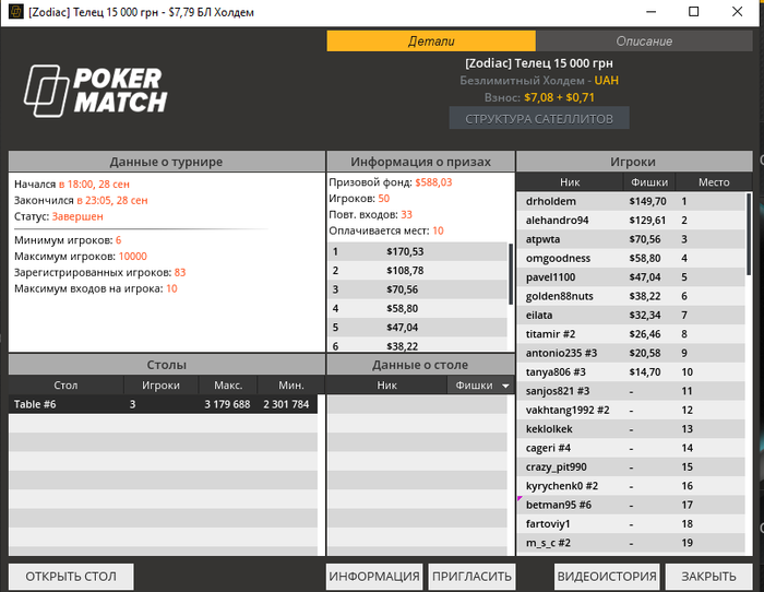 Поздравляю призеров хомки) Деньги всем отправил! 1-е место 30+11.5, 2-е 20, 3-е должно быть 10, но отправил 15 так как не смог устоять против авы моего любимого актера и режиссера, гениального Алекса Невского) +10 баксов получает KasperCyber за то что смог выбить меня, причем в первой раздаче) Кстати по случаю 3К фолловеров на канале я планирую разыграть в хомке 350 баксов из своего кармана) Добавлю 300 в основной призовой фонд+ сделаю 5 баунти по 10 баксов за меня и специально приглашенных гостей) Не уверен правда когда, так как нужно увеличить лимит на количество участников в хомке, но сообщу об этом событии заранее) https://www.twitch.tv/drholdem