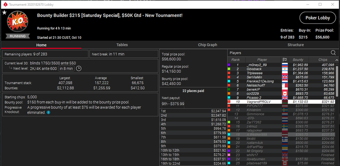 Вчера -350, сегодня где то столько же +. Но это все вата, а я хочу вам сообщить что в пятницу 20.00 при поддержке GGПокерок будет проведена хомка по случаю 3К фолловеров на канале! БИ 10 центов, помимо призового фонда который сформирует этот скромный и не побоюсь этого слова демократичный БИ, я добавлю 300 баксов в основной призовой фонд+ 50 американских денежных единиц за выбивание меня любимого ( 500 би Ооо!), а так же 250 долларов любезно выделит Покерок в виде билетов на чудесный турнир GG Masters Daili по 25 у.е, их получат первые 9 мест+ бабл бой турнира) В сумме будет разыграно больше 600 баксиков! Пароль турнира эгоистичный " Martin " ) Всем удачи и хорошего настроения) P.S. найти хомку легко "Турниры-приватные".