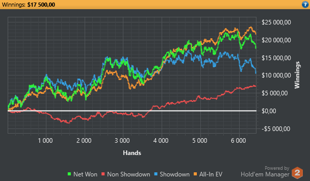 И еще вопрос в ХМ чтобы посчитать свой чип/ев нужно Chips/Ev Adjust поделить на кол-во турниров и сколько этот показатель должен быть, чтобы переходить к 1$? Заранее спасибо.