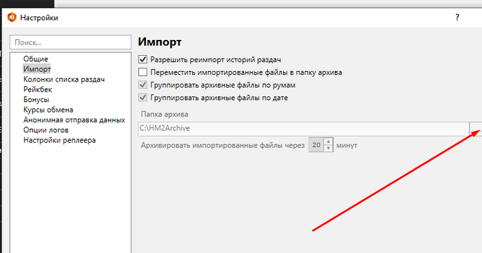 HM3 архивирует руки в папку C/HM3Archive, не знаешь как можно поменять эту папку?