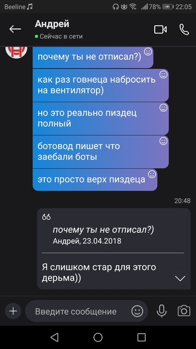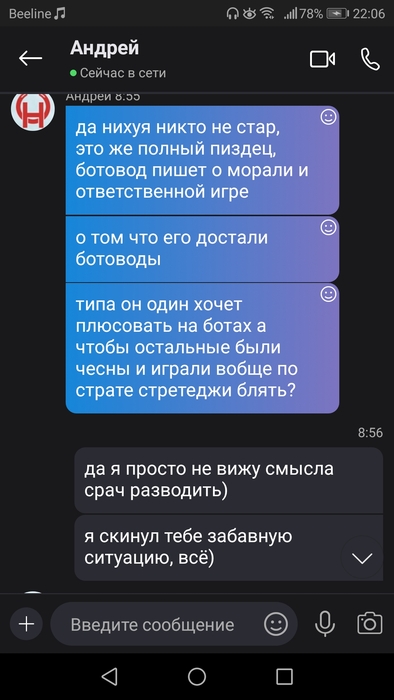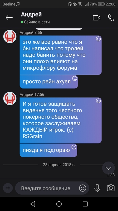 это все не о том кто долбаеб, кто ленивей, кто молодец, кто прав кто виноват, мне уже честно на второй день стало похуй на автора, он слишком упертый, дальше своих 10 би и ЧСВ ничего не видит, но если остальные начнут его активно поддерживать , и такие проверки отменят, боты опят расплодятся, ботоводы выдохнут , а мы начнем писать о том что покер умирает, и так будет обидно если все это случится из одной ленивой сраки, которой впадло записать видео но готов дебоширить 2 дня на форуме.
