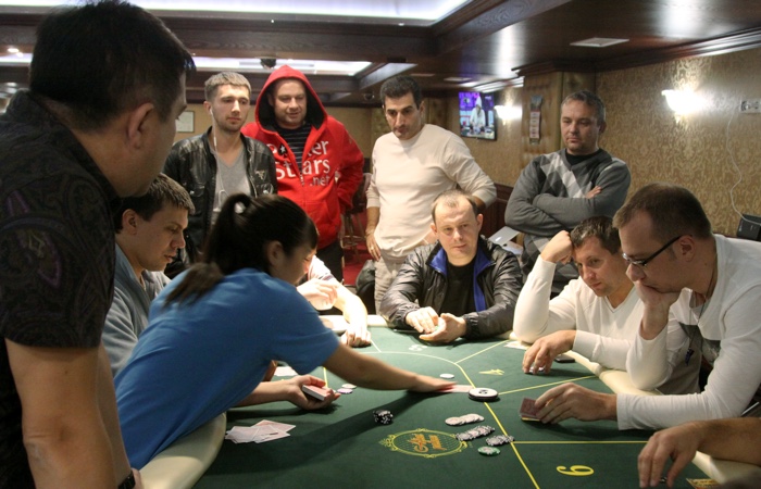 Выиграв сателлит, Попов явно исчерпал свою турнирную мотивацию, хотел даже "перепоручить" свой билет кому-то другому, но... Яна тут же взяла его в оборот: привела к стойке регистрации, протянула карточку. Евгений вытянул свое место, и начал игру. Ситуация почти такая же, как у Дробышева-Милованова.