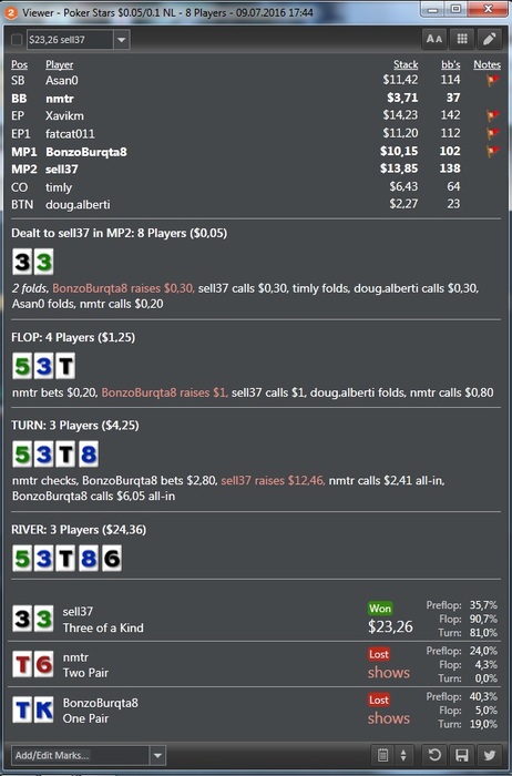 Играю сейчас с жестким селектом и начинаю привыкать играть только с фишами. Из-за стола не могу уйти, даже если пора куда-то бежать, а сижу в позе на слабых оппонентов. Мой профит и хорошее настроение зависит только от них. Нот вери гуд. Потому что на регов забиваю, и как результат, начинаю игнорировать стилы, много скидываю, статы становятся очень эксплойтными. Очень плохо защищаю ББ.