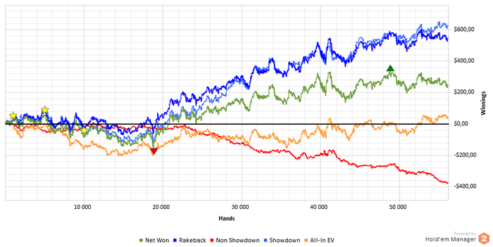 Seat 6: Hero ( $122.49 USD ) - VPIP: 29, PFR: 19, 3B: 7, AF: 3,3, Hands: 59125