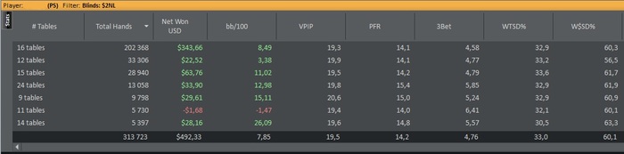 Когда я сажусь за стол, смотрю на 2 вещи, (стек оппа и ищу игрока в поиске, что бы узнать сколько столов он играет), если стек не полный, автодокупки нет, играет 1 стол сразу ставлю цветовую метку "предполагаемый фиш" а дальше 10-20 раздач хватает понять буду я играть за этим столом или нет.