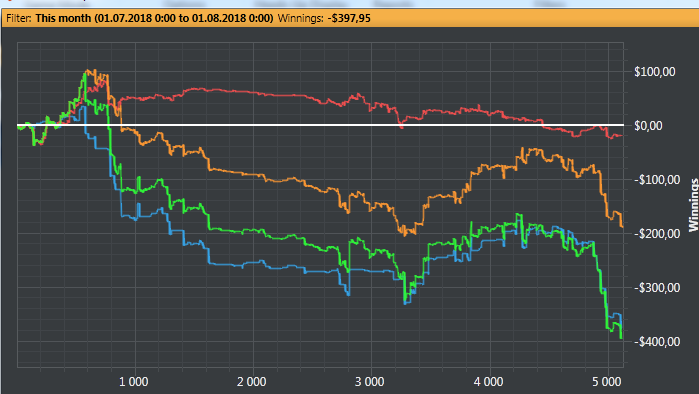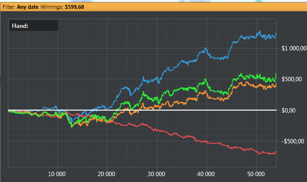 Невероятным усилием воли прикрепляю график) Саданул то вроде немного. Но вот эта прямая линия вниз, где просто за 10 рук 6 стеков ушло... тильтанул короче. Все заблочил кхуям. Короч недельку теперь тыкаю нл10. Ну и прально...уж очень агро БР теперь. В итоге откатило на 300 баксов с начала месяца.