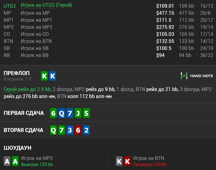 Зацените раздачу. Сдали КК в АА, а я проиграл только 2,5бб . ФР такой ФР 😍