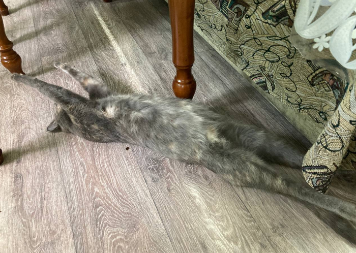 Одна минутка из жизни беременной кошки с именем по моей версии Внучка, по версии моей племянницы Апреля: