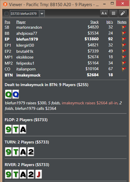Если брать только выборку в стеках до 20 ББ тотально залито около 150 турниров, по причине пуша в УТГ с указанными руками, а это еще не смотрел 99/88/77/66, там конечно пуши будут в стеках еще короче, но как правило это дип раны предфиналки/ где-то финалки, т.е. по сути упущенная прибыль, которая как мне кажется измеряется даже не сотням бачей (((