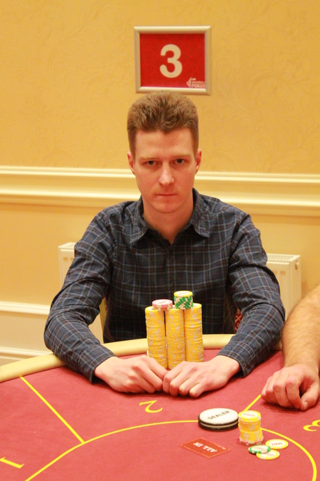 Андрей Вавилонский открыл 14К, у Виталия Ли осталось 9К, поставил алл-ин, Арен Бежанян колл на МБ, Александр Пригарный колл на ББ, флоп , все чек, терн , Арен чек, Александр чек, Андрей поставил 24К, пас пас, Андрей забрал побочный 15К, и открыл , Виталий , ривер