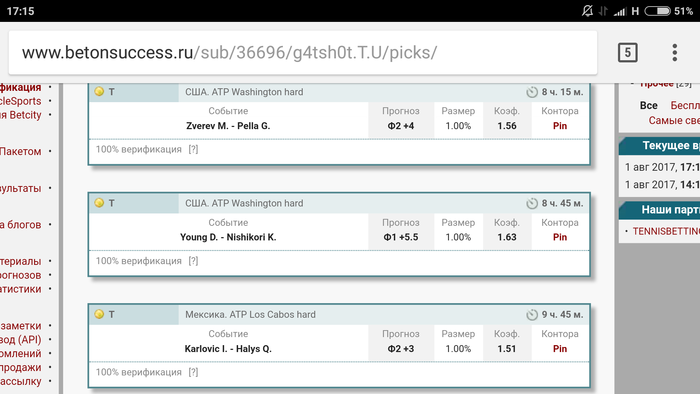 Berlocq C. - Melzer G. С форой по сетам Ф2 +1.5 1.63