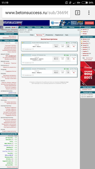 Ofner S. - Sousa J. С форой по сетам Ф1 +1.5 1.68