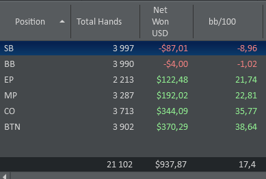 я катаю 6-8 столов с убержестким селектом, так что мне позволительно выкладывать такие отчеты по кол-ву рук и часов.