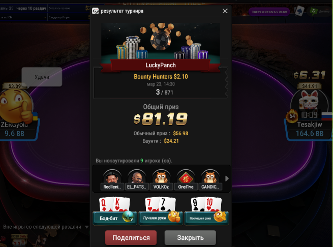 за 1,1к на partypoker