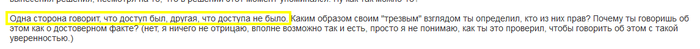 Мы говорим, что доступа не было и говорили это хитрухе с самого начала разбирательства (можем приложить скрины, если нужно). Причем отсутствие доступа тоже легко подтвердить. Достаточно просто спросить об этом учеников. Мы предлагали это сделать хитрухе, когда разговор заходил о спорных моментах, но он отказался.