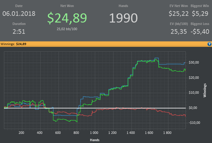 Последние пару сессий в минус вышли. Ничего страшного, но вот одно меня беспокоит. Каждая минусовая сессия меня сильно огорчает. То есть понятно, что никто в таких случаях не испытывает восторга, но каждый раз я чувствую, что это моя личная неудача, от которой реально сложно оправиться. Может быть это влияет моя увлечённость покером? Я настроен серьёзно и каждый проигрыш даётся мне не легко. Такого быть не должно, если я планирую стать серьёзным игроком, но на данный момент ничего не могу с этим поделать. В одном я убеждён: если ты хочешь добиться серьёзных результатов в чём-то - ты должен быть одержимым этой идеей. Нельзя относиться к своей цели как к чему-то второстепенному. Да, параллельно идут и другие, более мелкие цели (например я на работу устроился, чтобы бабки не выводить, как я писал ранее), однако это лишь подспорье основной задаче. Ни разу не видел людей, достигших чего-либо и не отдавшихся этому полностью. Могу сказать, что периодически бывает такое, что я не играю, когда мог бы, не уделяю достаточно времени теории, когда должен. Не сказать, что я отношусь к своему делу наплевательски, но и что не проёбываюсь тоже утверждать нельзя. Я должен быть более сосредоточенным, собранным. Подумываю вот чёткое расписание на день и на неделю составить, расписать часы работы, отдыха и катки. Результат (хотя бы промежуточный) может быть достигнут куда быстрее, чем я рассчитываю, однако этого не происходит и ответственность за это лежит только на мне. Впредь постараюсь быть более дисциплинированным.