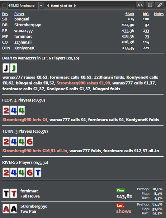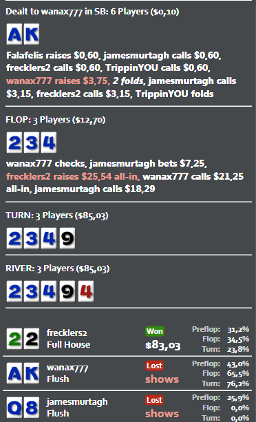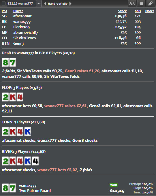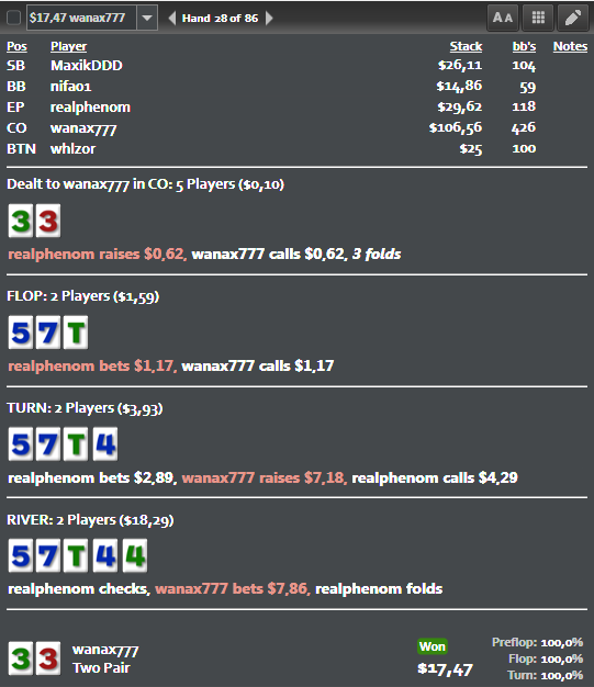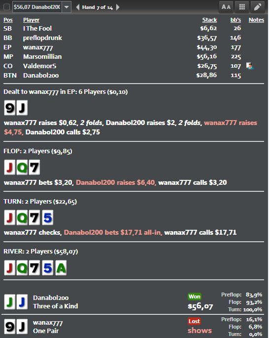 BAHAKC, я бы не с фолдил бы q9s флеш с флопа) вероятность что упадет флеш с флопа очень мала ) он мог так спокойно играть сеты также двухсторонку А5 А4 с блокером на трефу . по идеи мы коллим второй натс ,у нас третий ) но хз спорно.