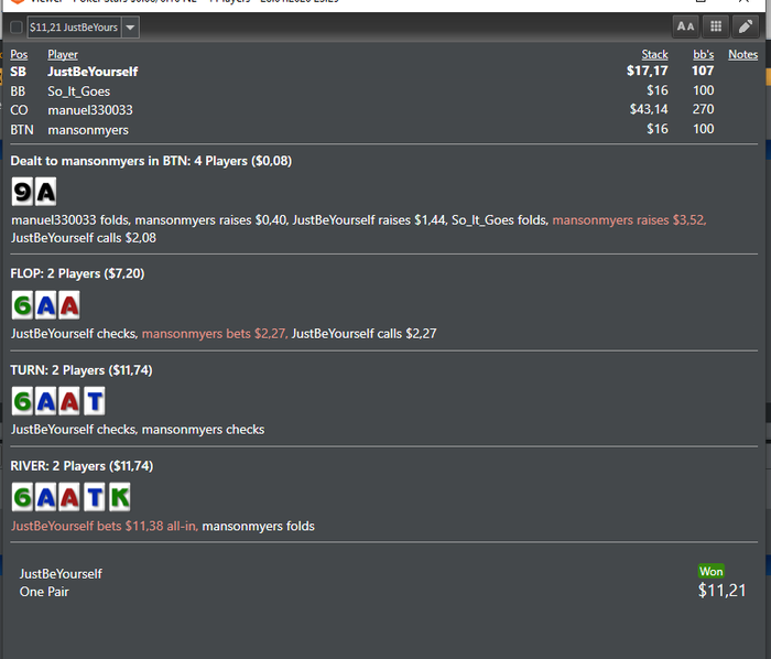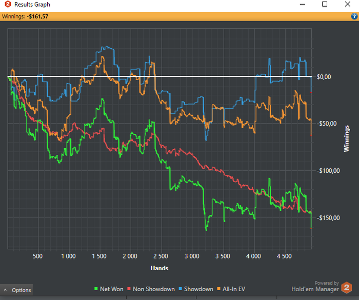 coldglock17, еще могу предложить не четыребетить префлоп, у тебя есть для велью руки лучше, а для блефа руки хуже с теми же блокерами и лучшей играбельностью типа а5/а4