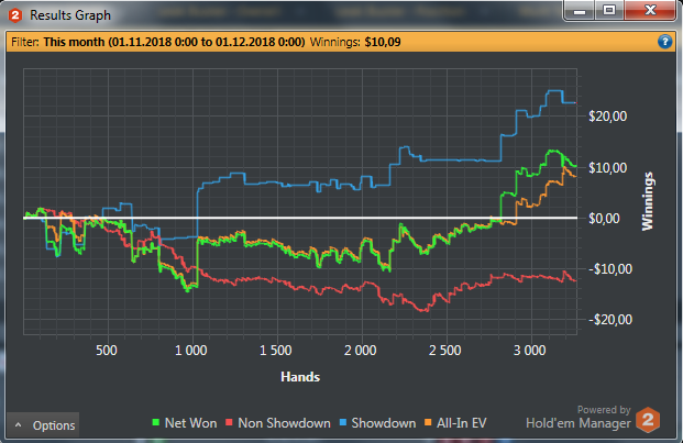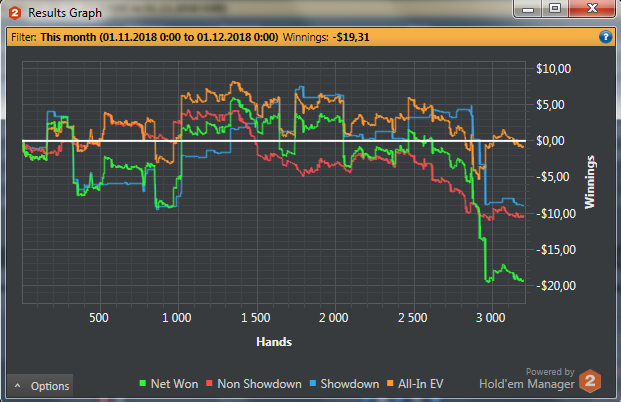 Вообщем поймал сегодня себя на мысли, что мне абсолютно не важен был результат, главное было играть на качество. По 10 бальной шкале качества оцениваю игру гдето на 4,5 , но постепенно думаю качество будет улучшаться. Были сегодня и переезды, и недоезды, и плохие ранауты терном и ривером и сложные бетфолды, но какогото тильта или злости я не обнаружил, был абсолютно спокоен и уверен в себе. Я считаю, что человек начинающий свой день с победы над самим собой, над своей ленью, над своей зоной комфорта просто не может злиться изза каких-то переездов в покере. Я чувствую как закаляю свой характер и организм становится крепче и постепенно возвращается энергия и силы.Помимо 5 часов катки успел опять сделать кучу дел по дому, приготовить еды, прочитать Тэндлера 2 часть, сходить в зал, погулять, спланировать свой завтрашний день и вообще времени теперь очень много, как минимум по ощущениям день часов на 5 стал дольше. Еще одно забавное совпадение. Вчера смотрел на ютубе видос про секреты доллара, ну всякие символы массонские на купюрах, знаки цифры иллюминатов 666 и все в таком духе, так вот после сессии открыл хм посмотреть график нл5 и зацените мое ЕВ/бб на 100 666 совпадение? Аахахахах походу эти ребята держут ПС и приняли меня в свой клуб.