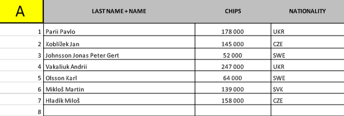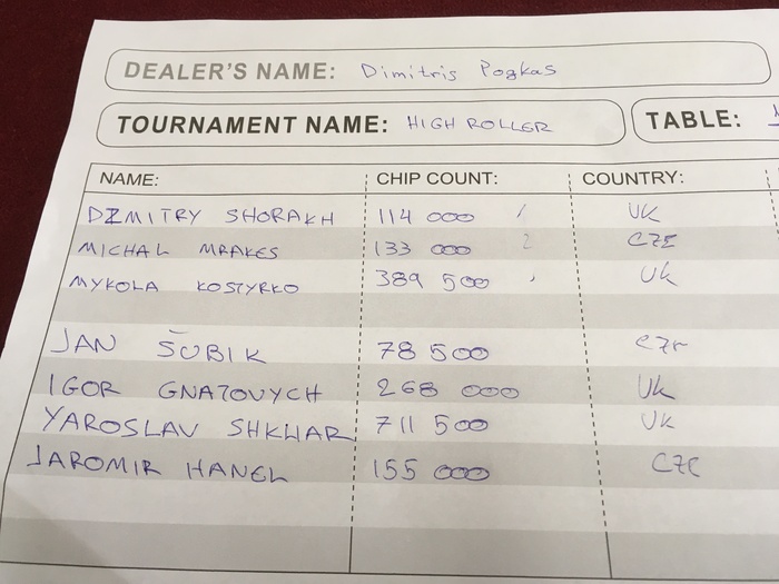 А в турнире хайролеров в строю остаются 15 спортсменов. У нашего Ярослава Шкляра 710 к фишек Турнир продолжится сегодня в 19:00. Поздняя регистрация будет доступна в течение первого уровня