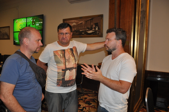 У Алексея и Николая примерно по 420 000 фишек. Это средний стек Игорь короткий - меньше 200 тысяч У Ярика горка - где-то в районе 850 тысяч Блайнды 4-8 к