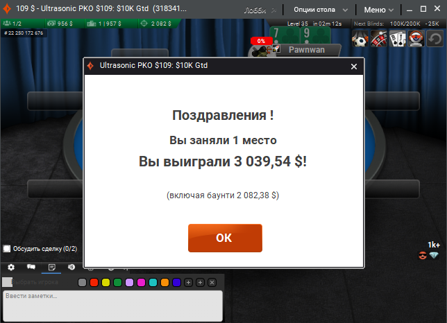 1 место в $215 PKO на PokerKing, +$25,910